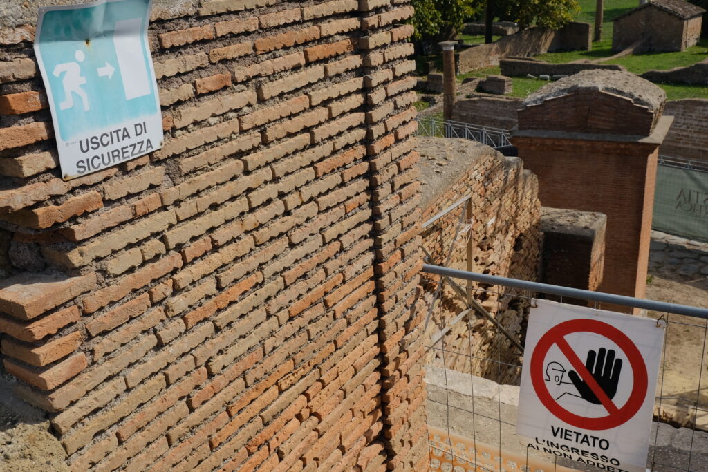 Hace no mucho publiqué una foto hecha en Cartagena, en el museo donde se encuentra el submarino de Isaac Peral. En ella se veía una salida de emergencia cerrada con una cadena. Pues bien, el sábado pasado visitando las ruinas de Herculano me encontré con otra lindeza por el estilo: Una salida de emergencia cerrada por una valla de obra. Es de reconocer que es bastante más fácil saltarse la protección que en el caso de Cartagena, y también que es más difícil que haya que usar una salida en unas ruinas a cielo abierto en su inmensa mayoría. Pero bueno, queda hecha la demostración de que en todas partes cuecen habas. Y pasta.