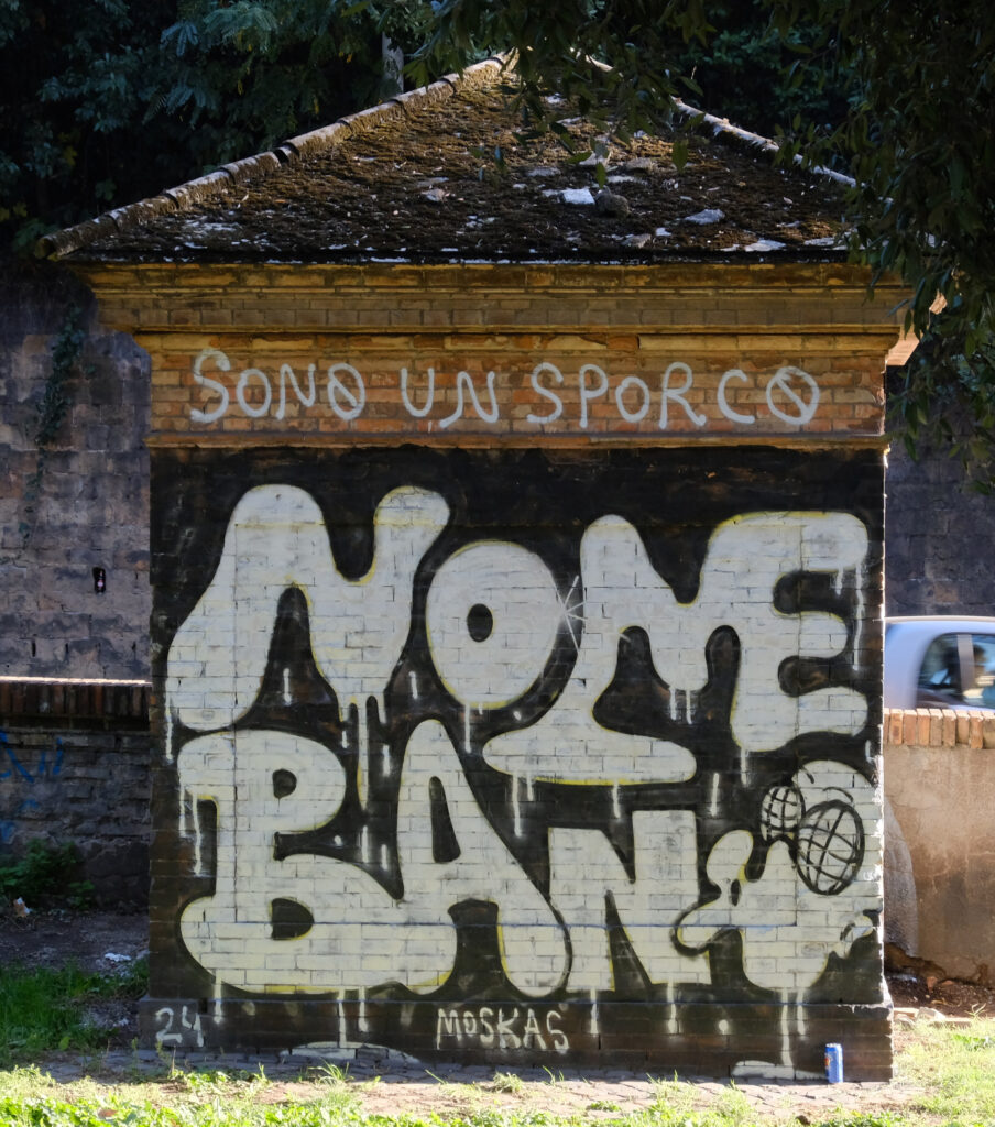 Esta, sin duda hecha por un español, se encuentra en la entrada de Villa Borghese más cercana a la Piazza del poppolo, en Roma. Lo del español lo digo porque quién si no, pondría una ñ en una pintada que, además, está en ese idioma. Bueno, a medias, porque parece que alguien añadió la parte superior en italiano (soy un cerdo). El mensaje no puede ser más adecuado en una ciudad donde hay una mirlada de gente que vive en la calle y cuyas condiciones higiénicas, por tanto, dejan bastante que desear. Y bastante resulta un adjetivo muy considerado, créanme.