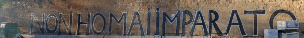 Y además en mayúsculas. Pintada de unos 20 metros de largo por casi dos de alto, hecha en una de las paredes de una facultad de la zona de la universidad Sapienza de Roma. ¡Qué cabreo tendrá la criatura para hacer esta pintada! Por cierto la he visto en algún otro sitio también, de modo que el cabreo debe ser de órdago a la grande, la chica, los pares y el juego.