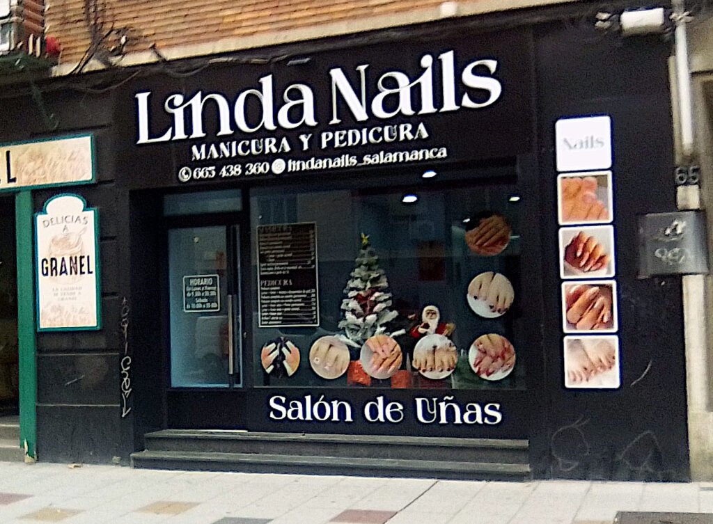 Esa moda de poner los nombres en inglés en lugares en los que la población apenas sabe de esa lengua el «yes» y el «by» ha calado hondo. En esta de la foto las letras de la tienda Linda Nails son de tamaño descomunal. Sus clientas (casi solo tías) de inglés me temo que no sepan ni esas dos palabritas citadas. Tal es así la cosa que la emprendeduría puso bajo el que creen rimbombante nombre en inglés la explicación «manicura y pedicura» y, por si alguna parroquiana no llegase tampoco a esos términos abajo explica «salón de uñas».